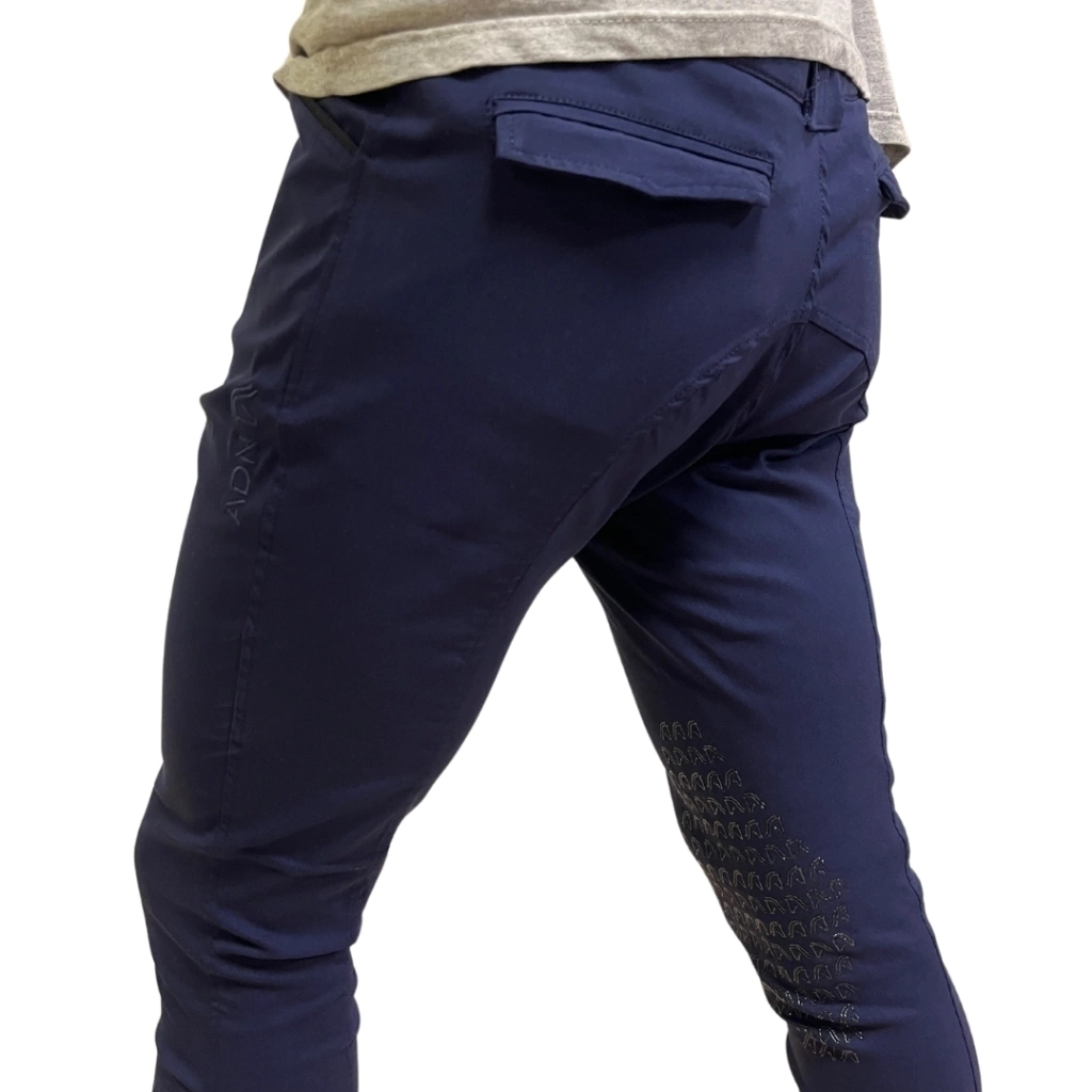 Diseño con corte clásico, grip en las rodillas para mejorar el agarre y la estabilidad sobre el caballo y puños de lycra.