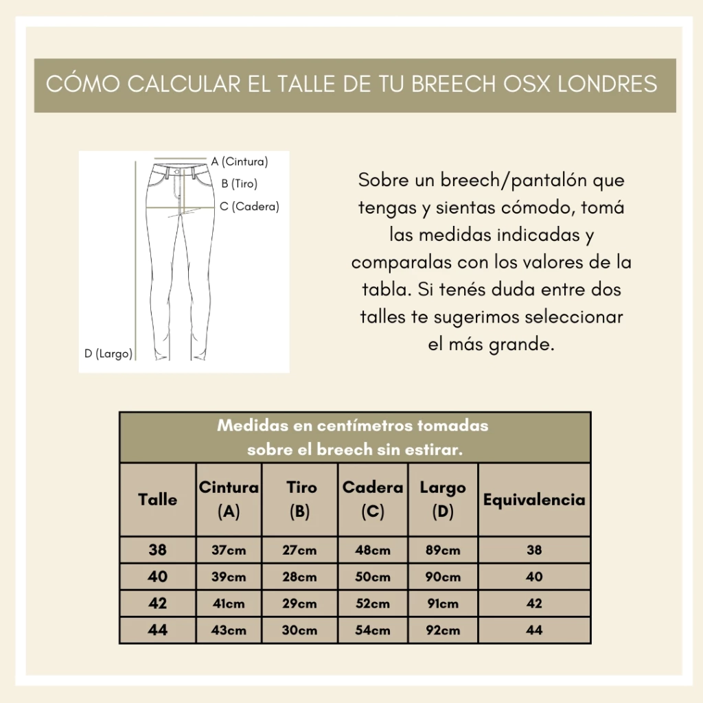 Con la medida de la circunferencia de un pantalón que te quede bien, tomada a la altura del botón, ¡Te ayudamos con el talle!