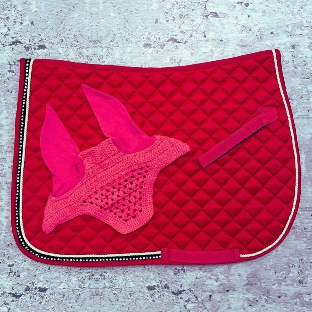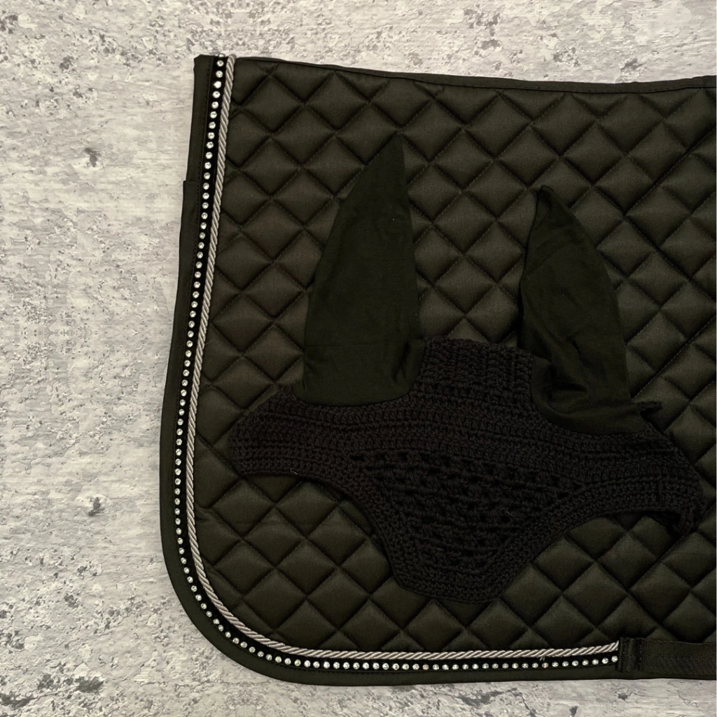 Conjunto mandil Amx con strass y orejeras para caballos para equitación.